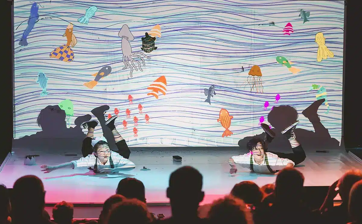 This touching and playful non-verbal show uses live musicians who perform the accompanying score and sound effects, stunning interactive animation projections and live whiteboard drawings, and an abundance of theatrical imagination.